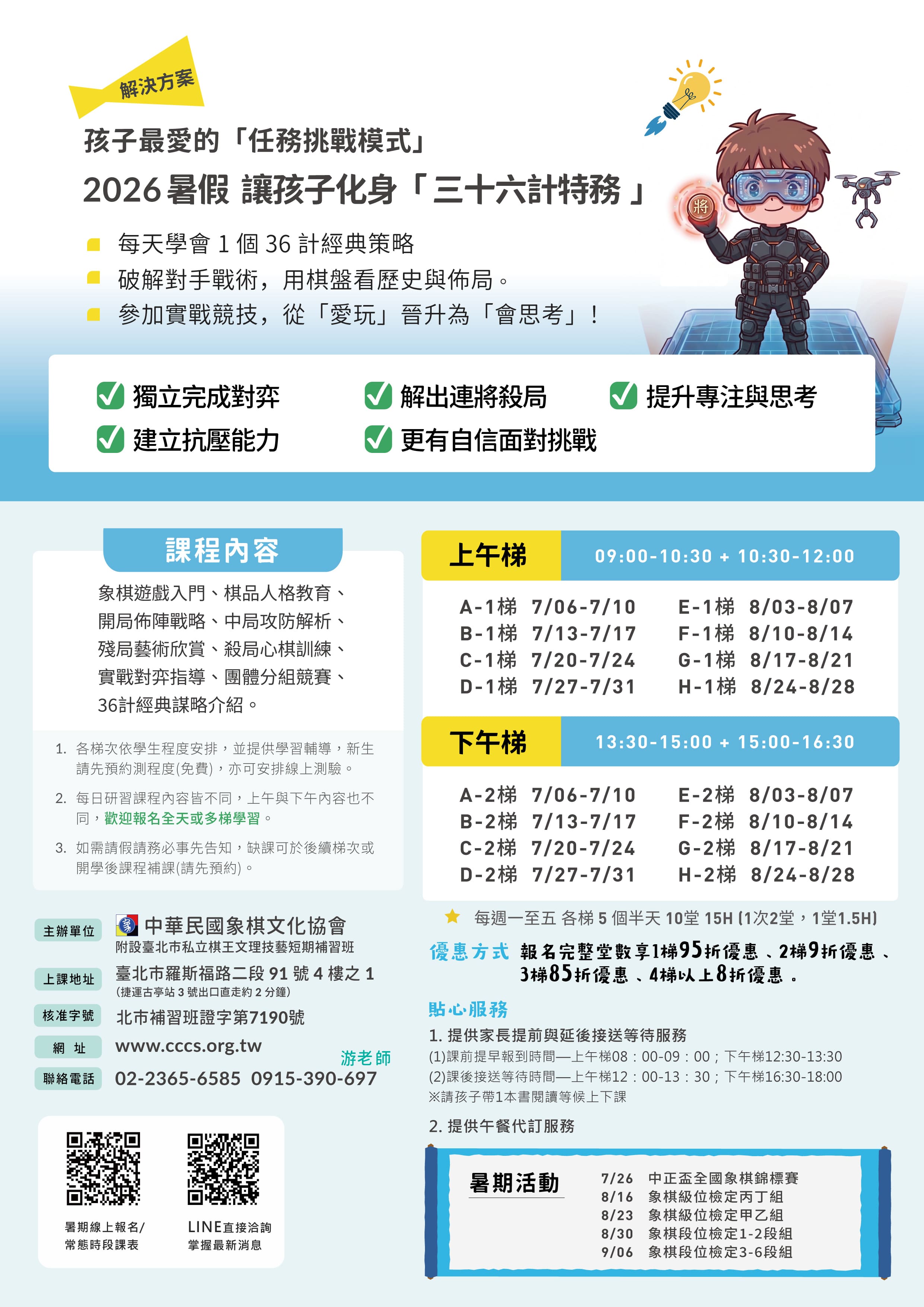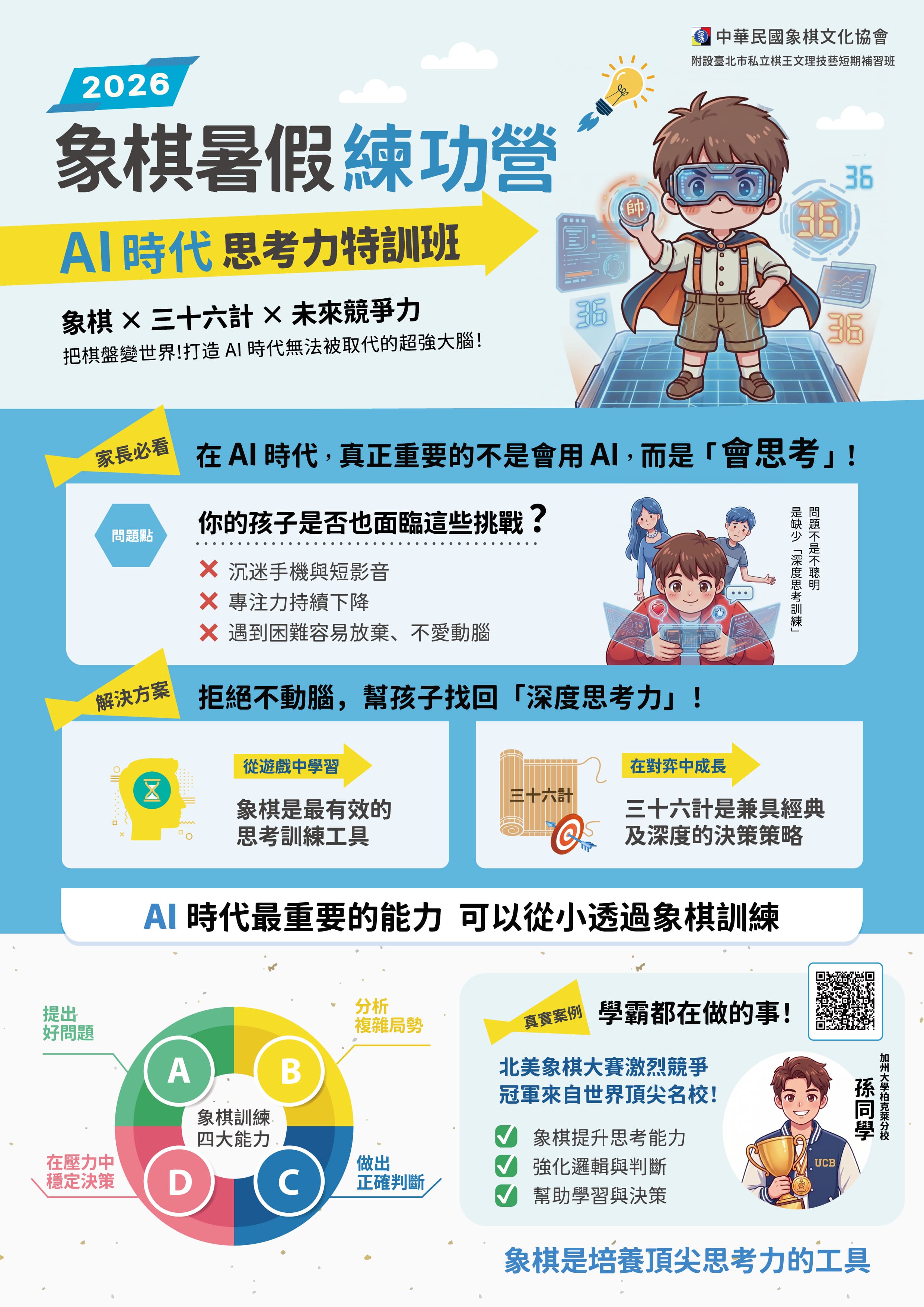 ▪️結合「象棋 × 三十六計 × AI思考力」,培養孩子專注力、判斷力與決策能力,打造未來競爭力!