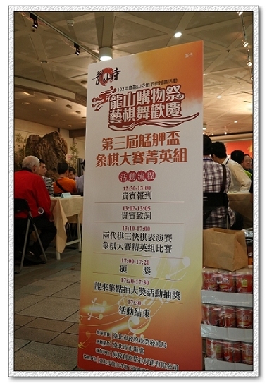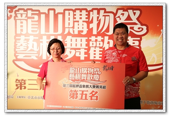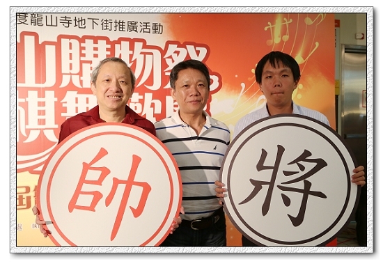 市場處處長王三中表示,連續三周的龍山寺地下街推廣活動進入尾聲,今年特別以更專業的規格舉辦象棋大賽,將艋舺盃塑造成為全國大型盃賽,提供眾多棋友更好的競賽環境及切磋棋藝的機會,並且配合聯合促銷活及抽獎活動,讓前來龍山寺地下街的消費者能夠觀賞最高規格的象棋賽事,還能享優惠好康。
