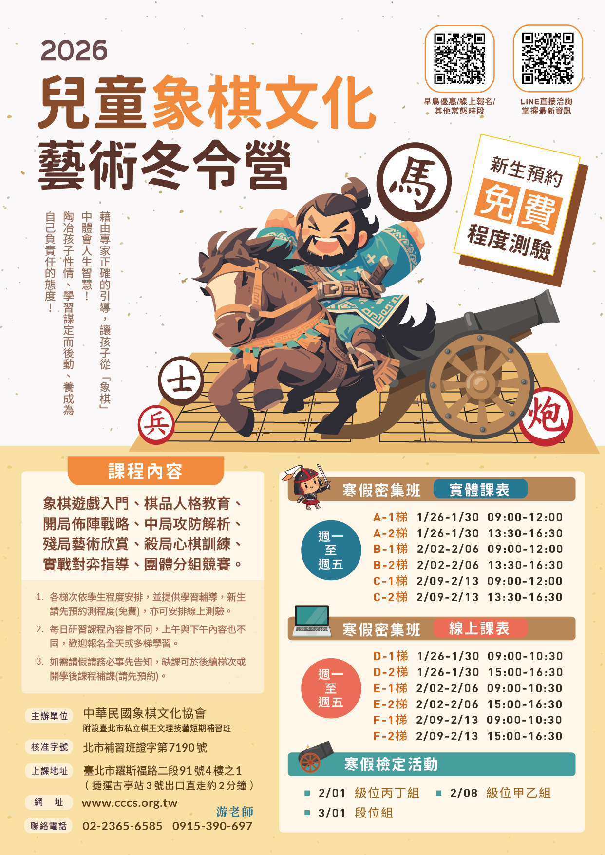 2026兒童象棋文化藝術冬令營(1/26-2/13)